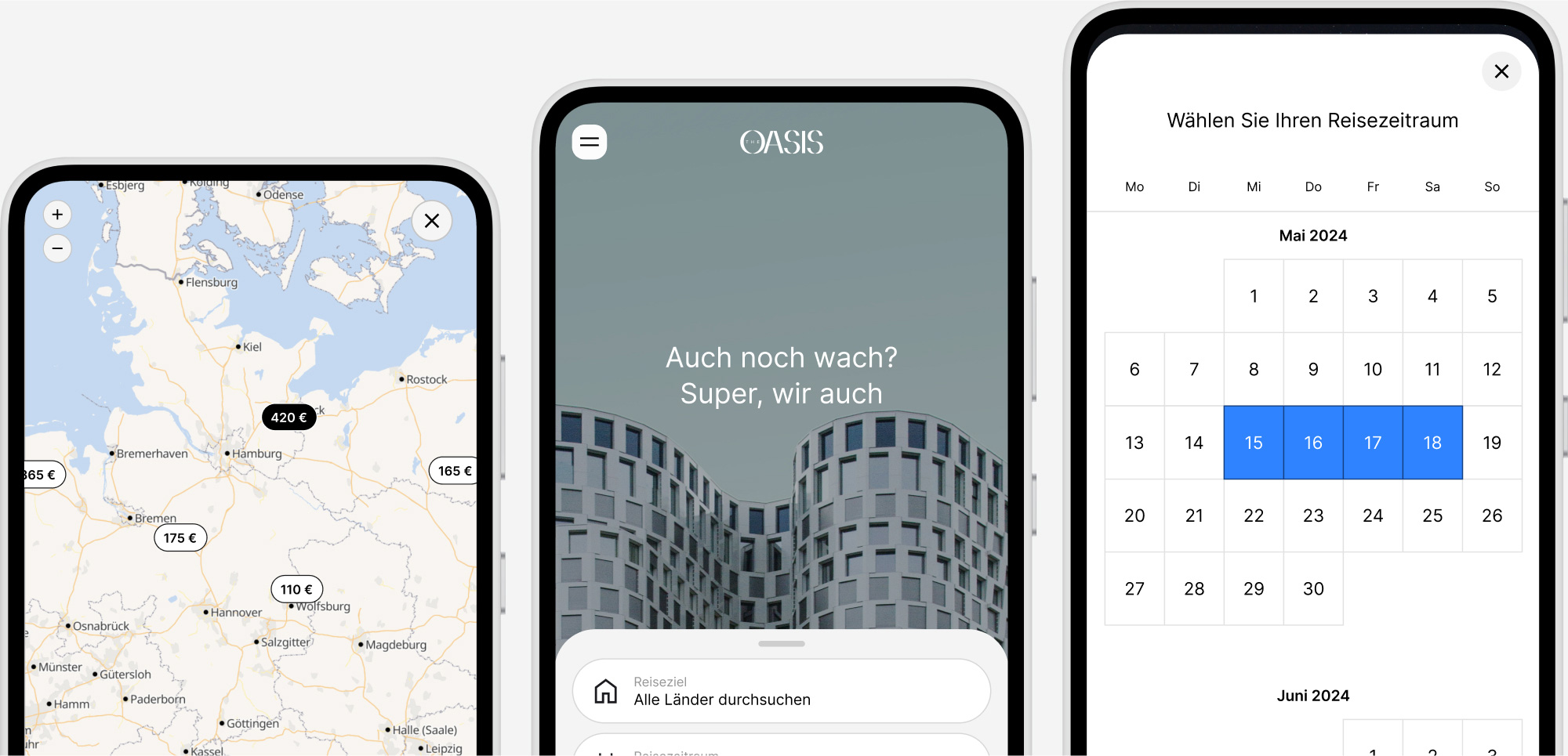 MultiProperty feiert jedes einzelne Hotel. Die Listendarstellung ist die gekonnte Balance von Emotion und Information. Das Bild fängt den ersten Blick des Gastes, wenig später treten die sorgfältig gestaffelten Informationen in den Vordergrund: vom günstigsten Ab-Preis bis zur Entfernung zum nächsten Bahnhof.